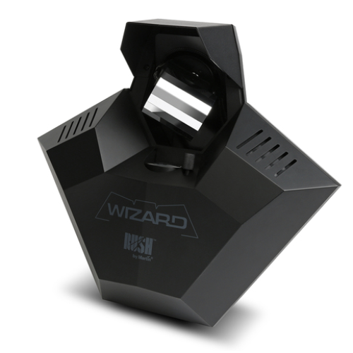 The RUSH Wizard is the iconic Martin Wizard Extreme re-energized: lighter, brighter, more compact and even more energy-efficient. This music triggered and DMX-Controllable “full-house” effect light, features extraordinary bright and magical effects. It features a color wheel with seven colors and a gobo wheel with 15 unique designs, as well as a shutter for strobe and pulse effects. The Wizard delivers more than 80 agile light beams, each beam chasing the other while continuously changing color and gobo patterns.